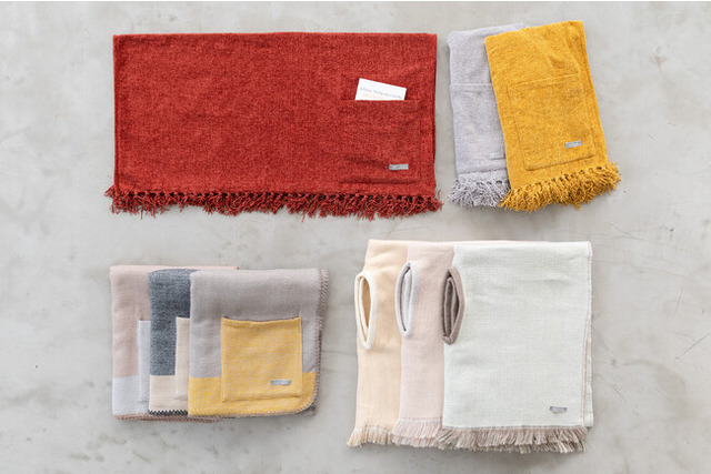 人気シリーズにポケットが新たに付きました。ブランケットの周りをステッチで仕上げたり、あたたかさを実現しながらも程よく薄手の生地にしたりすることで、畳みやすくすっきりとカバンに収まるように仕上げました。楽に持ち運ぶことができるため、お仕事やお出かけ先のカフェ、寒い季節のドライブなどのお供におすすめです。