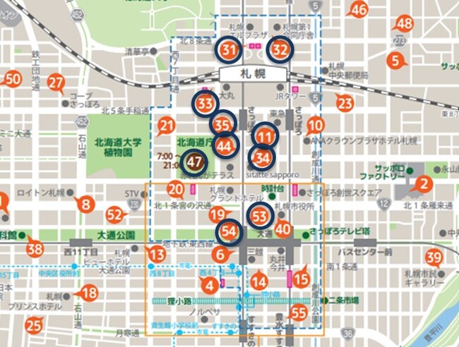 下記の通り10か所に設置しました。 ※大通公園~札幌駅が主な範囲