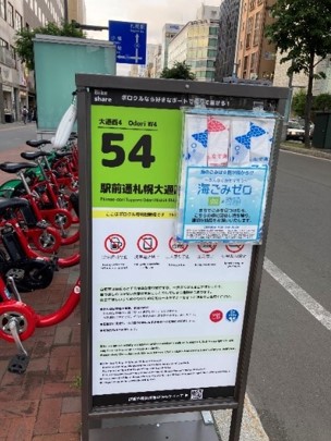 札幌市内のシェアサイクルポートにごみ袋ケースを設置