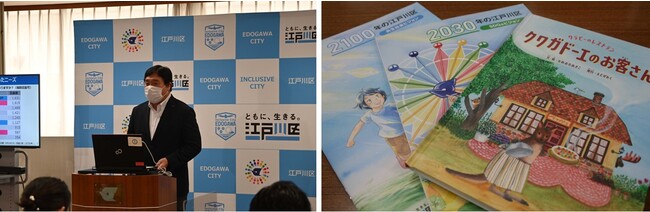 江戸川区は、2021年7月1日に子どもたちが生きる2100年を見据え、全国でも珍しい、全ての人を“共生”の対象とした「ともに生きるまちを目指す条例」を策定。区民一人ひとりが「共生社会」に共感し、ともに「共生社会」への行動に繋げていくことを目的に、『2100年を見据えた共生社会ビジョン』、『2030年を見据えたSDGsビジョン』、『子どもたちの理解を深める絵本』を制作し、2022年9月8日(木)に開催した定例会見にて完成発表いたしました。