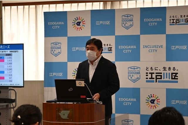 定例会見で斉藤猛区長は、「共生社会とSDGsの誰一人取り残さないというのは、同意語だと思っている。2100年に向かう経過の中でSDGsを意識することが必要だと思っている。2100年には区の人口、収入が減っていく未来が見えている中で、このままの行政でよいのか、将来に負担を先送りにしないためにはどうしたらよいかを今考えて行動に移していく必要がある」と語りました。
