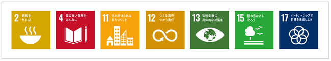 国連サミットで2015年に採択された2030年に向けての国際開発目標「持続可能な開発のための2030アジェンダ(SDGs)」。本プロジェクトでは、特に以下の7つの目標に寄与するものです。また、当社のサステナビリティへの取り組みについては、以下の通りです。