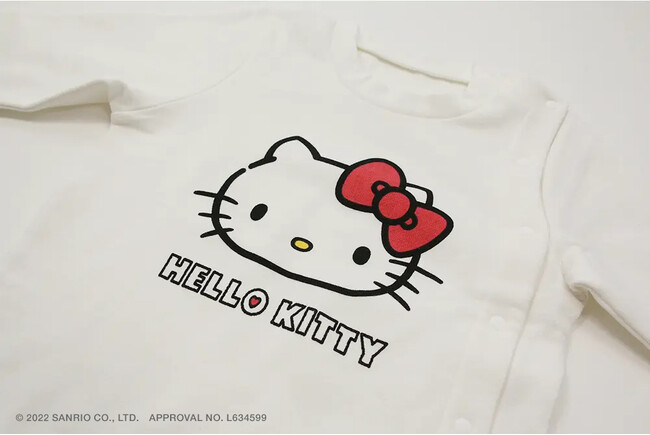そこで、キャラクターシリーズ第1弾として「前開きキャラクタートレーナー」を開発しました。 子供服で人気の高い「ハローキティ」のデザインです。