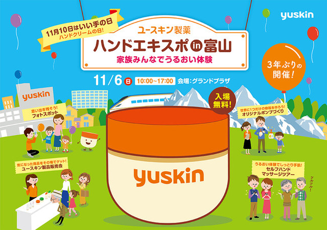 ユースキン製薬株式会社(本社/神奈川県川崎市 代表/野渡和義)は、ハンドケアの普及啓発のためのイベント「ハンドエキスポ」を3年ぶりにリアルイベントとして富山市内で開催します。