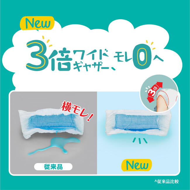 1.【NEW】3倍ワイド*1ギャザーで横モレを防ぐ