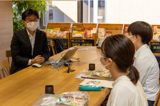 ケンミン食品株式会社(兵庫県神戸市・代表取締役社長:高村祐輝)は、社員の家族(大学1~3年生)を対象に9月26日・28日の2日間、「絆インターンシップ」を開催しました。絆インターンシップは、親が働いている会社を知り、ケンミン食品のファンになってもらうこと、また今後の就職活動で職種や会社選択の参考にしてもらうことを目的に実施。大学3年生の福村美空 (みく)さんと、大学1年生の高垣柚来(ゆら)さんが参加しました。