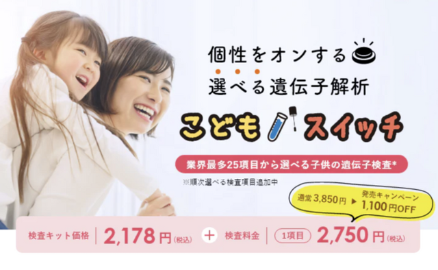 株式会社アルプロンのグループ会社、DTCフィールドで子ども向けの能力遺伝子検査等を手掛ける株式会社DNA FACTOR(福岡県福岡市:代表取締役 多根和宏)は、子どもの才能、性格、運動神経、メンタル力など、気になる項目を1項目から選択できる、選択式遺伝子検査【こどもスイッチ】を10月1日にリリース致しました。