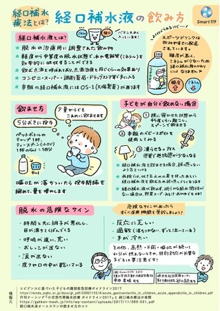体内水分の補給と維持を目的とする経口補水液の服用は、脱水状態を改善させる「経口補水療法」として、日本救急学会『熱中症ガイドライン2015』、日本小児救急医学会『小児急性胃腸炎診療ガイドライン2017』において推奨されています。