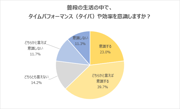 普段の生活の中で「タイムパフォーマンス(タイパ)」や効率を意識しますか?という質問に対し、「意識する」と回答した学生が23.0%に上りました。「どちらかと言えば意識する」39.7%を合わせると、6割以上の学生が「タイムパフォーマンス(タイパ)」を意識していることが分かります。「やりたいことが、たくさんある」「限られた時間のなかで、効率よく大学生活やプライベートを充実させたい」「オンライン授業など、得られる情報が同じであれば、少しでも短い時間で情報を得たい」などの声が寄せられました。