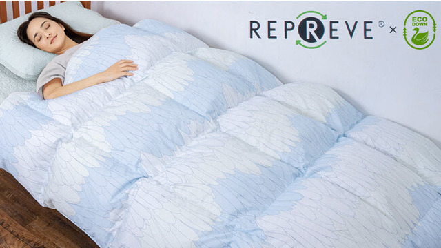 さらに「恋するおふとん」は再生羽毛と共に、使用済みペットボトルを回収・資源化した、米国の繊維会社「Unifi」の「REPREVE(R)リプリーブ」を布団生地に使っています。