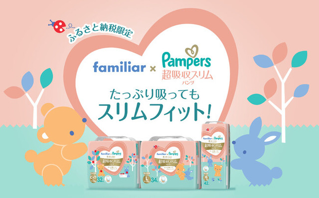「パンパース ファミリア特別デザイン 肌へのいちばん* 超吸収スリムパンツ」は、「子育てしやすい街・神戸」を広く全国に発信するため、神戸市のふるさと納税返礼品として登録されます。2022年10月6日(木)より、神戸市のふるさと納税返礼品取扱いサイトにて予約受付を開始し、同年12月下旬より返礼品としての発送を開始予定です。