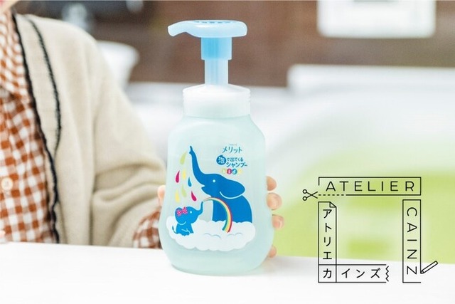 アトリエカインズ限定カラーのパッケージが登場。イメージカラーのグリーンを中心に、よりシンプルでさわやかなデザインに。リボンを曲線で描くことで、優しくやわらかなイメージも実現。お風呂場にも調和するデザインです。