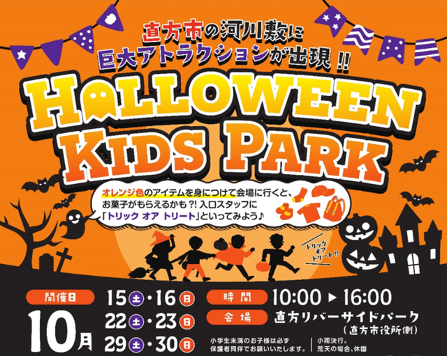 直方リバーサイドパークにて、お子様向けのイベント「Halloween kids Park」を開催します。