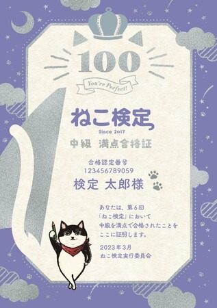 第6回より、中級・上級を100点満点で合格された方には、特別な「満点合格認定証」をそれぞれ進呈します!