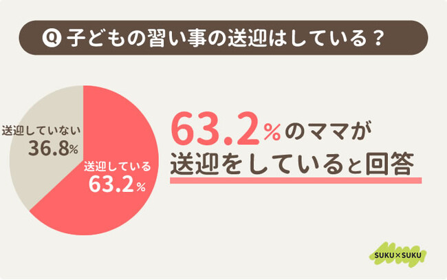 スクスクのアンケート調査の結果では、63.2%の保護者が「習い事の送迎をしている」と回答しています。