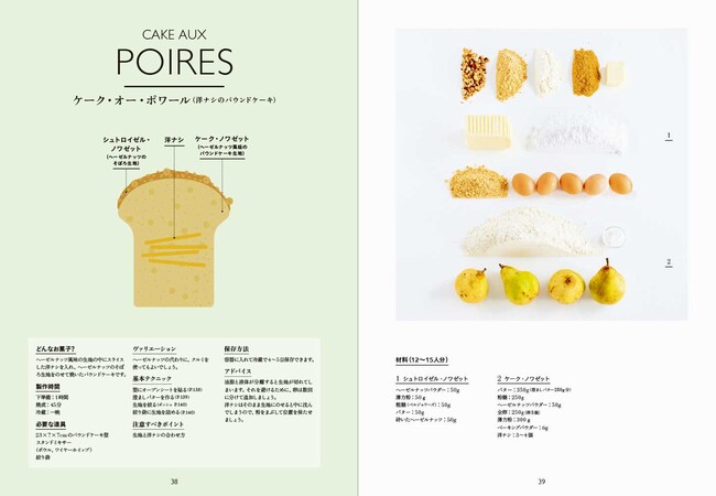 生地作り・デコレーション・グラサージュなど焼き菓子の基本10種、パウンドケーキ・マドレーヌ・クッキーなどのレシピ31種、道具&テクニックを美しい写真とイラストで徹底解説。簡単&本格フランス焼き菓子とバリエーションが満載の1冊です。