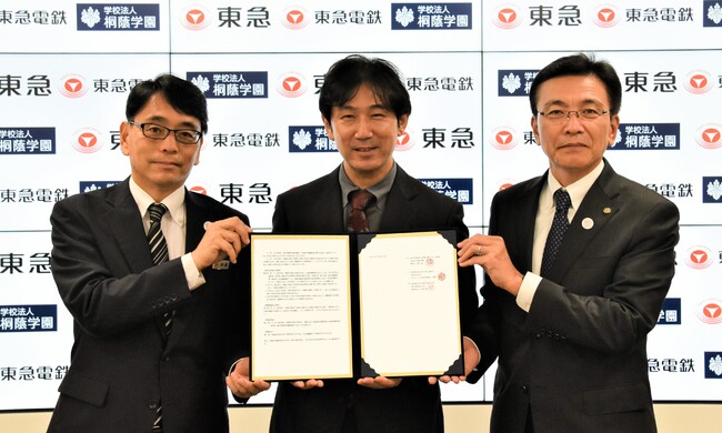 写真左から、東急 鈴置事業部長、桐蔭学園 溝上理事長、東急電鉄 福田社長
