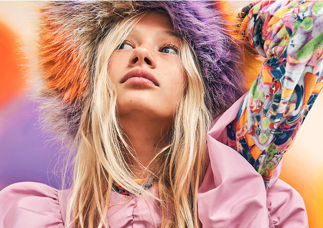 100%、廃棄されたペットボトルをリサイクルして作られたスパンコールを施したフーディーとスケータースカートや、サンセットをイメージしたカラーのアイコニックなフェイクファーコート、ハット、ミニバッグにはリサイクルポリエステルを一部使用するなど、よりサステナブル素材を使用しながら、クールでスタイリッシュなアイテムを展開し、ヤングキッズの自由でクリエイティブな自己表現を可能にします。