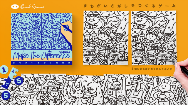 よくきたな、新人!「まちがいさがし開発課」の仕事は、まちがいさがしをつくること!あらかじめ用意されているイラストに、まちがいを描き足してほしい!ただし、カンタンすぎるまちがいは言うまでもなくダメだが、難しすぎるまちがいもダメだ!ちゃんと見つかる程度の間違いをうまくつくるのだぞ!