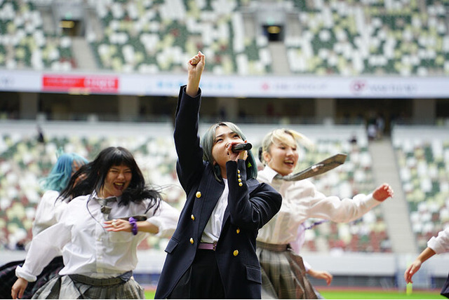 この国立競技場という大舞台で、企画の立案から制作・実行に関わった学生たち。素敵な思い出と経験になったことでしょう。後日、パフォーマンスを含めた動画を学生たちの手により制作し、HP等で紹介します。