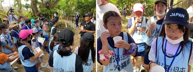 「自分にできることとして月桃オイルや月桃茶をつくり、それが売れれば月桃を植える人が増え、グリーンベルトが広がって、海を守ることにつながっていけば」という伊良皆さんの熱いメッセージに、隊員たちは集中して聞き入っていました。最後にみんなで月桃茶を飲み、「ムーチーとはちょっと違う味だけど、美味しい!」と爽やかな味わいを楽しみました。