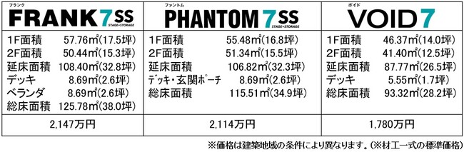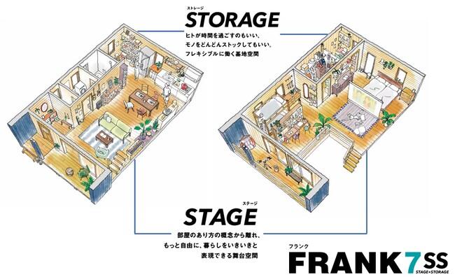 ワンダーデバイスは、クールなガルバリウムの外観から、中に入ると一転、木のあたたかい空間が広がる人気のシリーズ。暮らしを楽しむ道具として、自分らしい暮らしを作れる3つのモデルがあります。デッキとベランダがリビングやロフトと連続し外とつながるオープンな暮らしが特長のワンダーデバイス フランク、ちょっと秘密めいた仮面のクールフェイスの中にあたたかな木の空間が広がるワンダーデバイス ファントム、フラットな四角い大空間がらんどうを自分流につくりこめるワンダーデバイス ボイド。今回はこの3モデルそれぞれに特別モデルをご用意しました。テーマはStage&Storage。暮らしの中心となる空間は間仕切りがなく自由にアレンジできる暮らしの舞台であるStage。暮らしを支える舞台裏として、収納や家事スペース、書斎などに使えるStorageを用意しました。暮らしの自由度が高いプランで、自分らしい暮らしを表現し、家族の変化に合わせて変えていくこともできます。