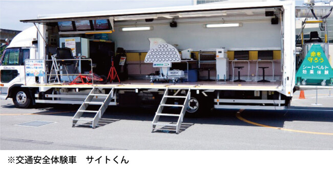 ■交通安全体験車「サイトくん」 「1台で自転車シミュレーターを始めとした17種類の機能を搭載!交通安全を体験して学べます!」