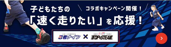 忍者ナインはこれまで全国約400以上のラボで子どもたちの「運動を楽しみたい」「少しでも速く走りたい」という想いを後押ししてきました。今回は、オリジナルシューズの「TOP☆STEAL」を通じて子どもたちの「速く走りたい」を応援してきた「バースデイ」とのコラボレーションで、子どもの運動の機会を創出して参ります。