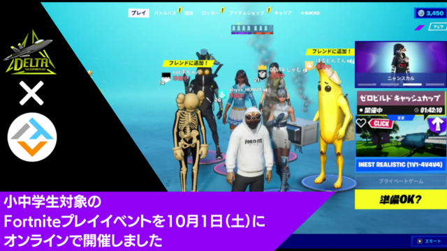 教室所属の生徒6名(小中学生)を対象に、DELTAesportsメンバーのSyamaさんから直接「FORTNITE」のプレースキルについての指導を受けました。