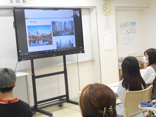 更に、学生から竹本様へ質問をしたり、感想を話したり、時差があるアメリカと日本ですが、リアルタイムに繋がることができました。