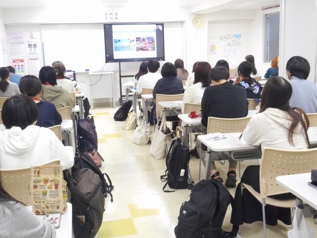新潟ビジネス専門学校では、異文化研究という授業で、日本以外の国の文化について学ぶ機会があります。コロナ禍の前は、実際に外国へ行き、学生各自が外国と日本の文化の違いを学び体験していましたが、現在はまだ渡航ができないため、アメリカ在住の方とオンラインで繋ぎ、リアルタイムに講演をしていただきました。