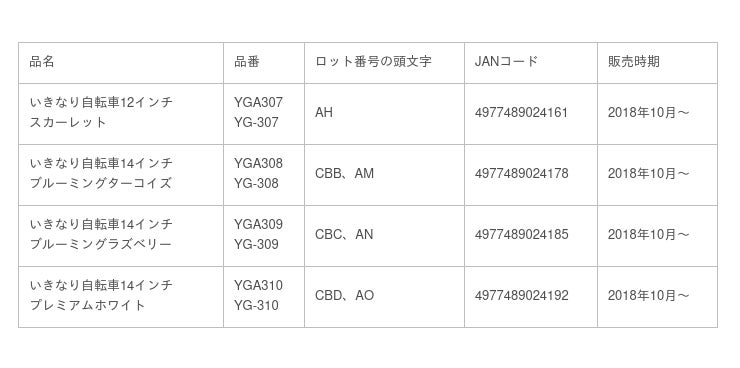 保護者の方が目を離さずにご使用をお願いすると共に、同様の事故発生の可能性を低減し、お客様により安心してお使いいただくため、後輪のチェーンとギア部分を覆う保護パーツをご提供させていただきます。保護パーツが入荷次第、下記の車種をお買い求めのお客様へ無償提供を行いますので、必ず取り付けてご使用をお願いします。