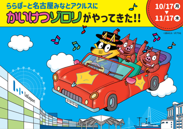 三井不動産商業マネジメント株式会社(本社:東京都中央区、代表取締役社長:大林 修)が運営する ららぽーと名古屋みなとアクルスは、 2022年10月17日(月)~11月17日(木)の期間に、国民的児童書である「かいけつゾロリ」シリーズ(作・絵:原ゆたか/ポプラ社刊)とコラボレーションし 「ららぽーと名古屋みなとアクルスにかいけつゾロリがやってきた!」 を開催します。