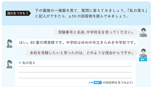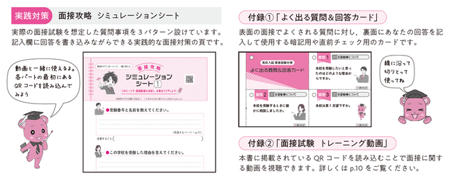 『高校入試 合格ガイド 面接試験』では、受験生が自学自習で取り組みやすい工夫を凝らしています。