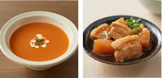「素材を生かしたお惣菜」は、毎日食べたい「いつものおかず」6種類です。味がしみ込んだ柔らかい豚肉に、しいたけのエキスを加えてコクと旨みをきかせた「豚の角煮」や、隠し味にバターを入れてまろやかさを加えた「肉じゃが」など、食べ慣れた味でありながらも、ひとり分をつくるには下準備や調理に時間がかかるメニューを手軽に食べられる一品です。