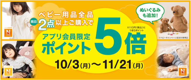 【キャンペーン概要】https://www.nitori-net.jp/ec/characteristic/member-ptcamp/babygoods/
