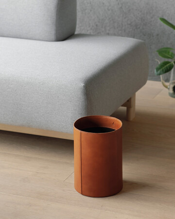 ヌメ革のナチュラルな魅力と表情を生かした、美しい筒状のダストボックスです。内装には防水性・防汚性を備えた「防水ファインレザー」を採用しお手入れしやすい仕様に。ダストボックスの用途以外にも、雑誌やブランケットを収納するなど自由な使い方を楽しめます。