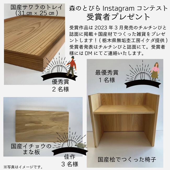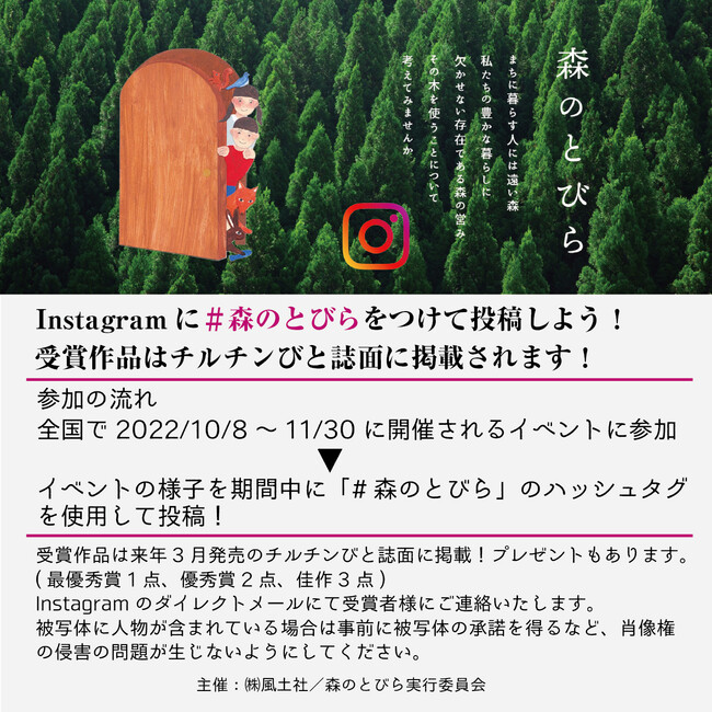 イベントに参加→「#森のとびら」をつけてInstagramに投稿すると、受賞作品は、『チルチンびと』に掲載!