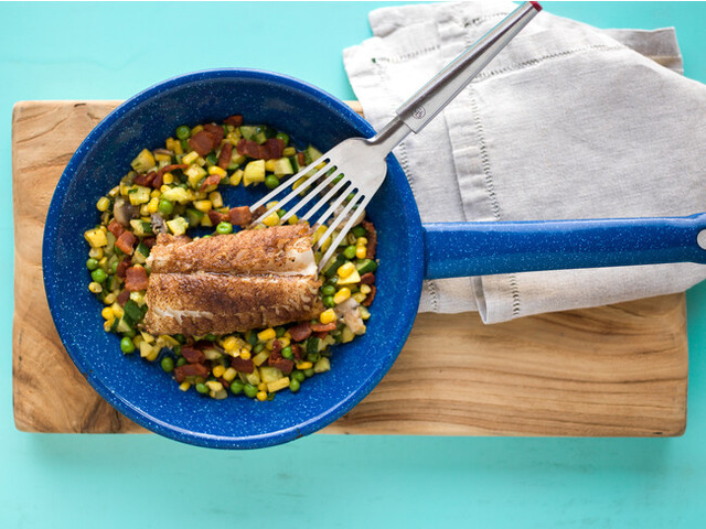 レシピ:シマホッケとじゃがいものガーリックレモンバター炒め