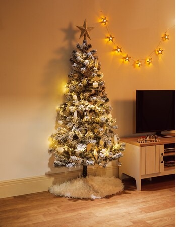 従来のツリーを半分にしたハーフツリーは、壁にぴったり付けることで、お部屋をより広く使うことができます。半円形なので、お好みのオーナメントや電飾を飾って正面から見れば、いつものクリスマスツリーとまったく変わりません。奥行きは約40cm(高さ150cmの場合)と従来品と比較して省スペースのため、TV台などの奥行とぴったりあい、よりすっきりと飾ることができます。