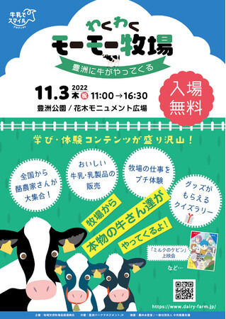 「展示」や「クイズラリー」を通じた酪農家との交流や、模型を活用した「模擬搾乳体験」、また北海道・宮崎県の酪農家とオンラインでつながって牧場の様子を見学する「オンライン牧場体験」や、牛乳・乳製品の販売ブースも実施します。