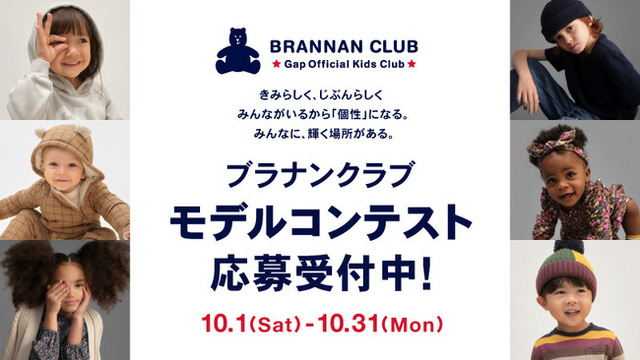Gapは、約2年ぶりとなる公式キッズクラブのブラナンクラブで、モデルコンテスト22を開催します。応募期間は2022年10月1日(火)から10月31日(月)の間、「きみらしく、じぶんらしく みんながいるから『個性』になる。みんなに、輝く場所がある。」というコンセプトのもと、好きなこと、夢中なことできらきら輝いている計10名のお子様を公式モデルとして募集いたします。
