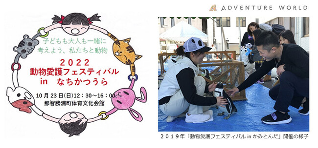アドベンチャーワールド(和歌山県⽩浜町)は、2022年10月23日(日)、和歌山県及び公益社団法人和歌山県獣医師会主催の「2022動物愛護フェスティバル in なちかつうら」にブース出展いたします。当日は、防災とペットについての講演や、動物フォトコンテストの応募写真展示などを予定しており、大人から子どもまで、動物と人との関わりについて理解を深める催しを予定しております。