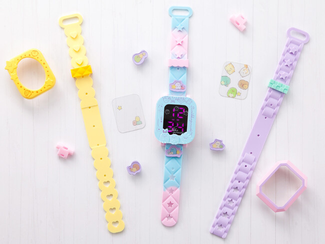 「MixWatchDigital(ミックスウォッチデジタル)」すみっコぐらし」は各パーツにすみっコたちがデザインされており、お気に入りのパーツを選んでオリジナルのすみっコぐらしデジタル腕時計が作れます。遊びと実用性を兼ね備え、大好きなキャラクターといつも一緒にいられる本商品は腕時計デビューにもオススメです。