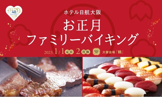 大阪 心斎橋のホテル日航大阪(大阪市中央区西心斎橋1-3-3、代表取締役社長・総支配人:呉服 弘晶)は、2023年1月1日(日・祝)・2日(月・休)の2日間、大宴会場「鶴」(5階/825平方メートル )にてシェフが腕によりをかけた新年を彩るお食事と恒例のビンゴ大会など、ご家族、ご親戚揃ってお楽しみいただける「お正月ファミリーバイキング」を開催いたします。