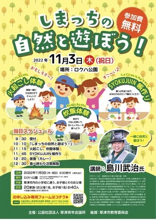 県立近江富士花緑公園所長の島川武治氏をお呼びし、自然の中で様々なことを体験して頂く内容と