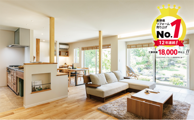 長野県塩尻市に本社を置き、新築住宅・リフォーム・不動産などを主軸とした住生活事業を展開する株式会社サンプロ(代表取締役社長:青柳弘昭)が展開する『サンプロリフォーム』は、この度、長野県売上12年連続ナンバーワン!※を獲得いたしました。※2022年9月リフォーム産業新聞調べ