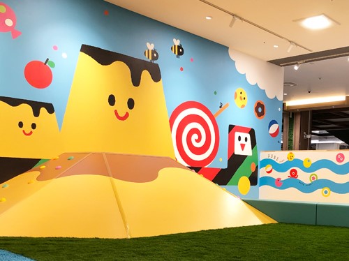 絵本の中に出てくるプリンをモチーフにした大型滑り台。