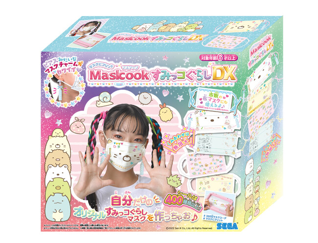 株式会社セガトイズ(本社:東京都品川区、社長:宮崎奈緒子、以下セガトイズ)は、熱・針不要の転写シール式で、デコレーション作業用のスティック、本体が1つのセットになった「マスクにプリント!マスクック」シリーズから、ハロウィンやクリスマスの仮装にぴったりなオリジナルマスクが作成できる『マスクにプリント!マスクックすみっコぐらしDX(デラックス)』を2022年10月27日(木)に発売します。