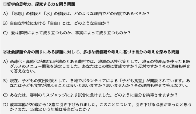 この2つの力を確認するため以下の2題を出題します。それぞれから一つを選び、生徒の考えを教えてもらいます。